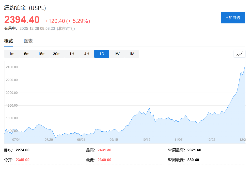 铂金与钯金均在昨日回调后迅速反弹国睿信配,其中现货铂金涨幅超过5%。